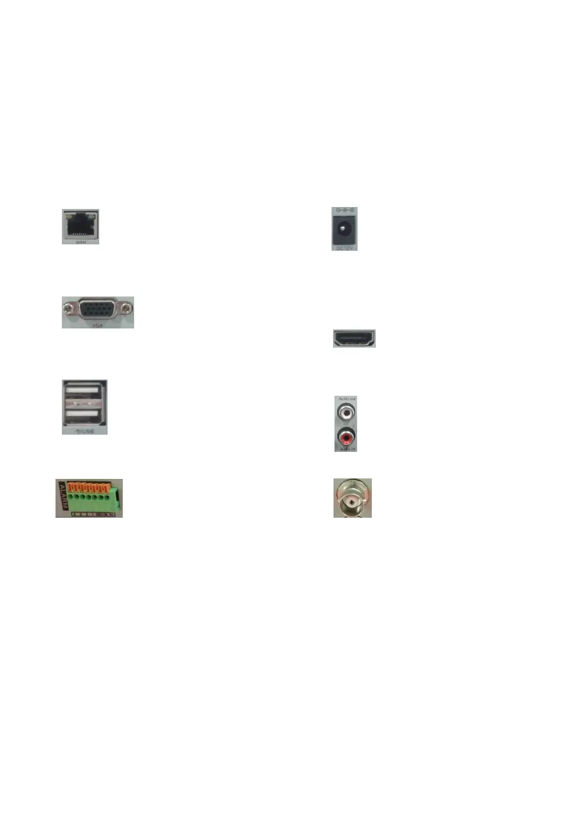 ALARM: alarm ingang/uitgang VIDEO IN: video-ingangen