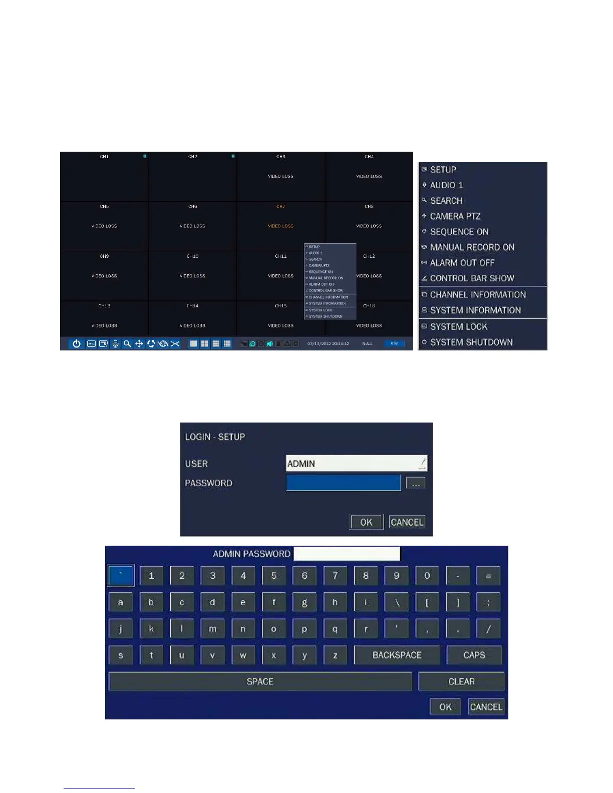 button on the front panel. Then select a user type. User can select one of user types (ADMIN, USER1,