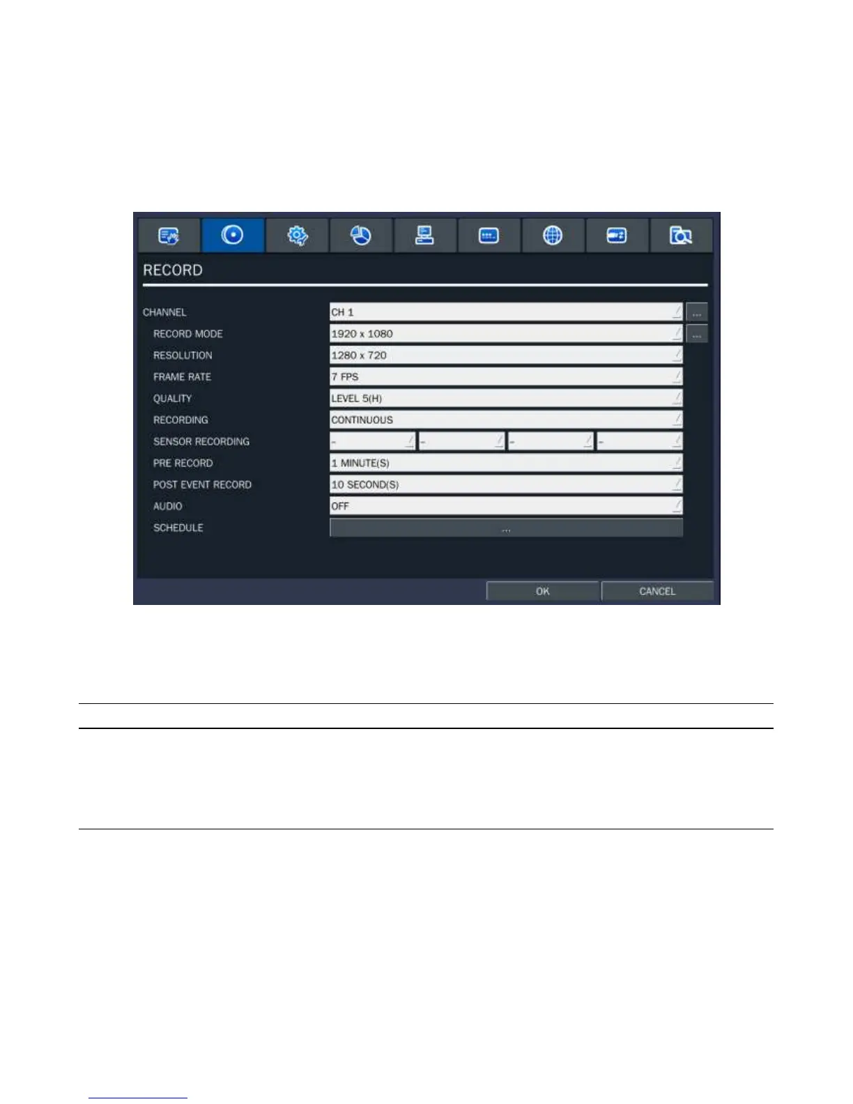 RECORD icon and press SEL button to enter the setup menu item. Navigate through the menu items using