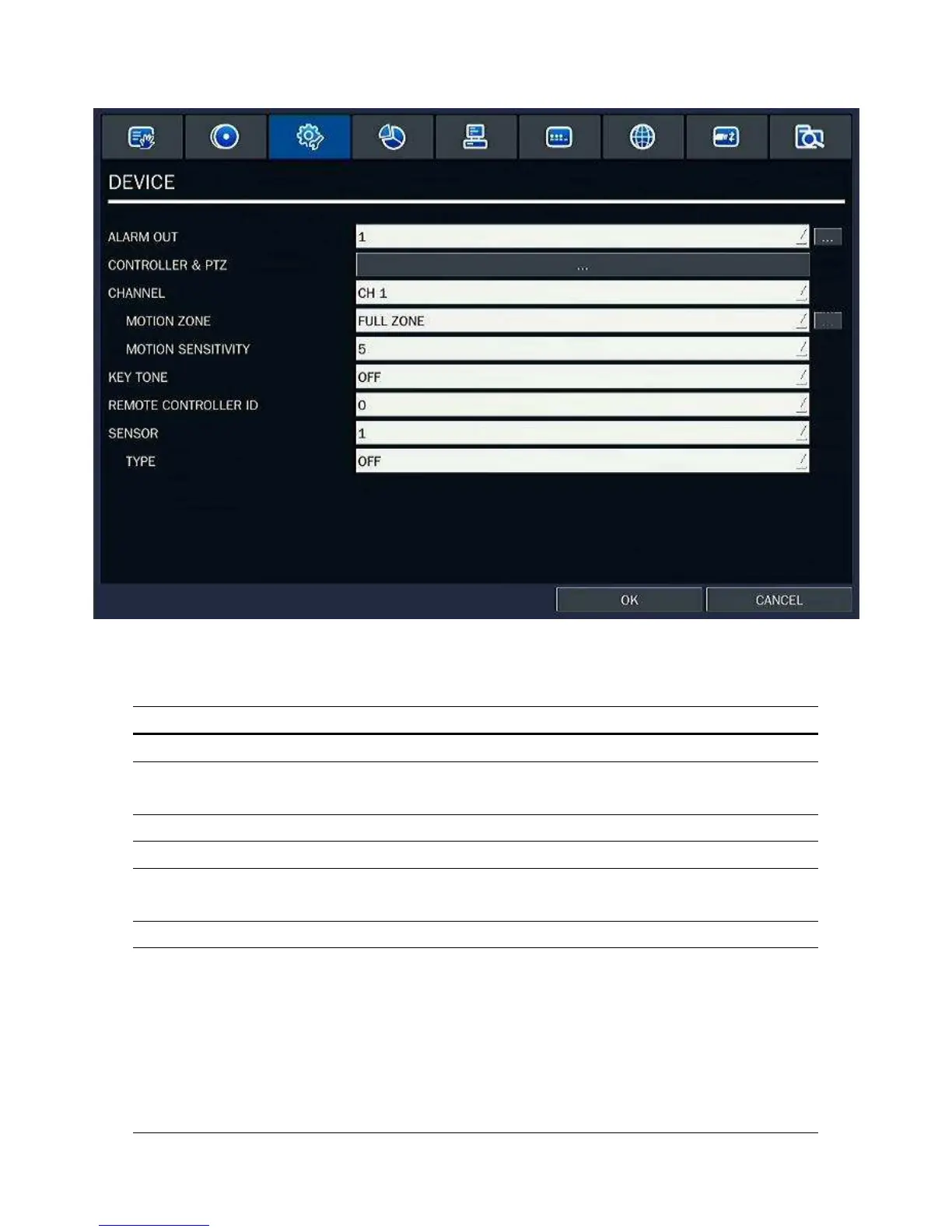 Table 2.4.1. Menu items in Device Setup screen