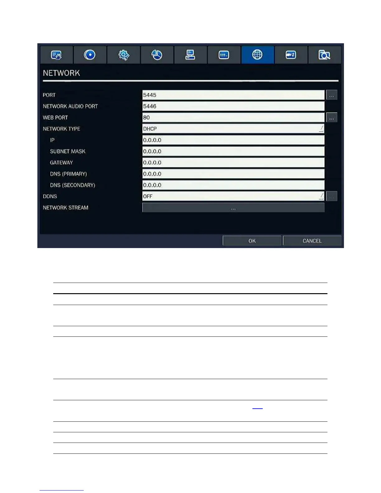 Figure 2.8.1. NETWORK setup screen