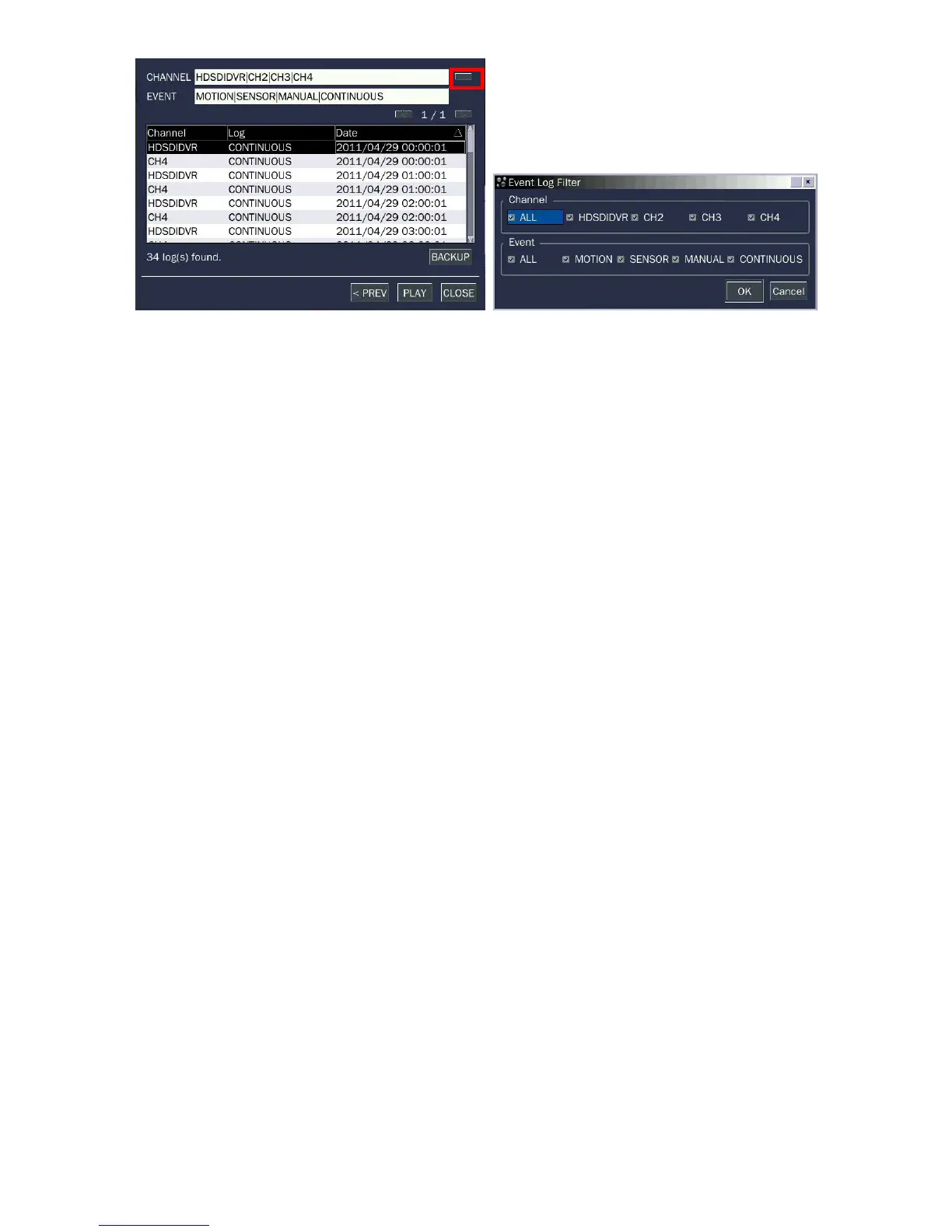 You can access from the oldest recorded data on the DVR hard drive by selecting GO TO FIRST TIME