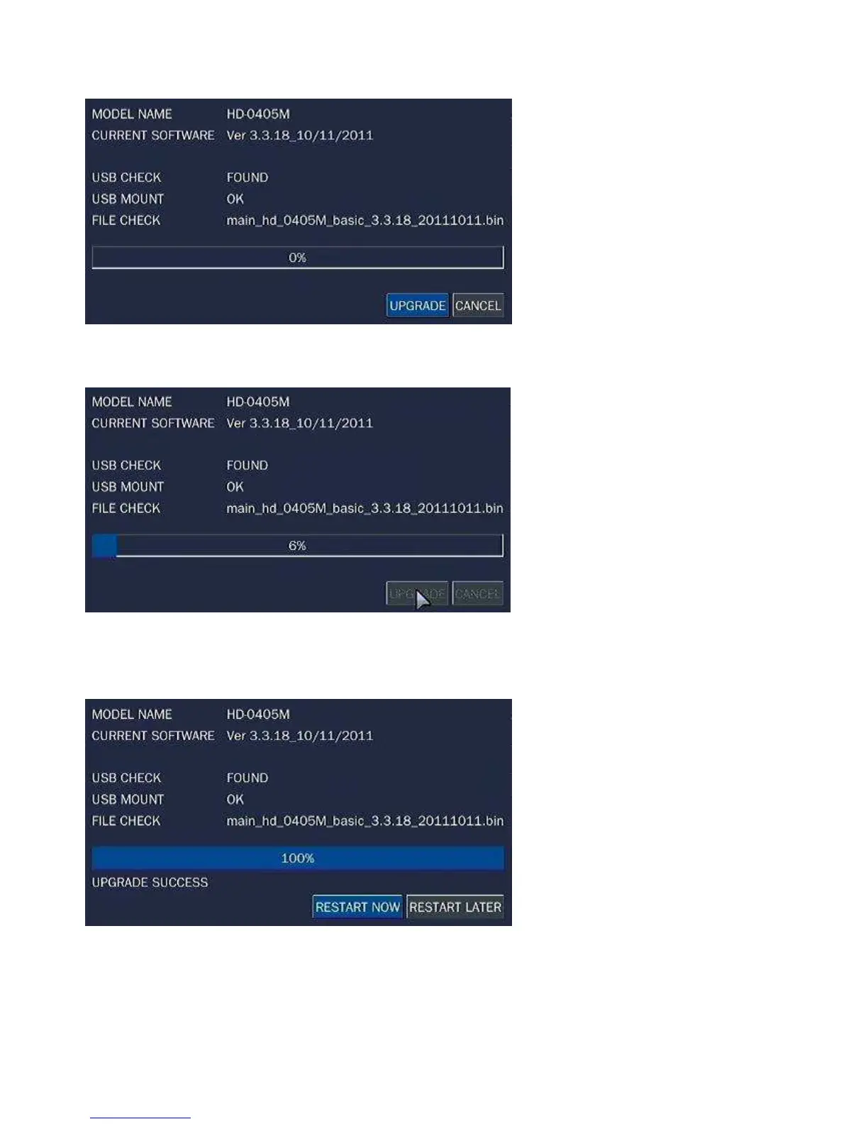 should be restarted. At that time, the USB memory stick has to be pulled out.
