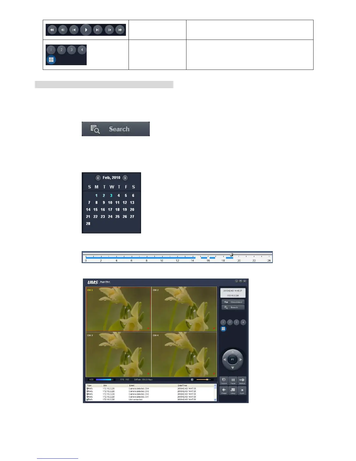 Video recorded in the remote DVR or Video recorded on the PC can be searched and played back.