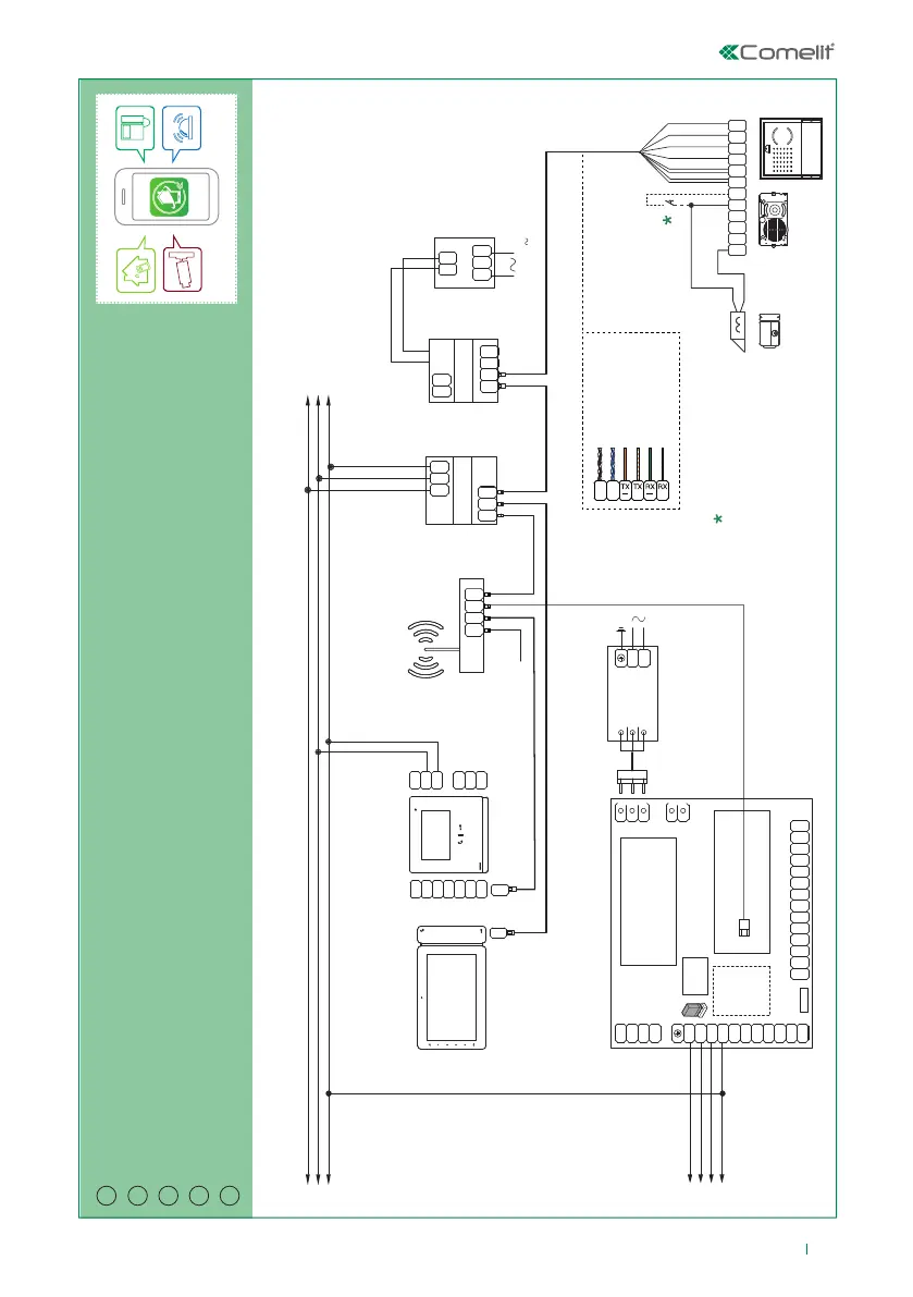 Conexión de Comelit Hub al BUS SimpleHome y a los supervisores (Ejemplo 2)