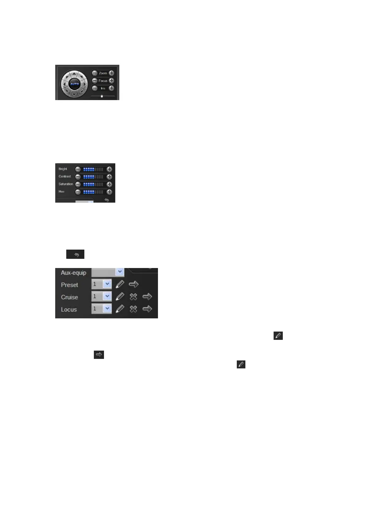 PTZ control: you can use eight directional keys to rotate front-end devices, and AUTO indicates auto-rotation.