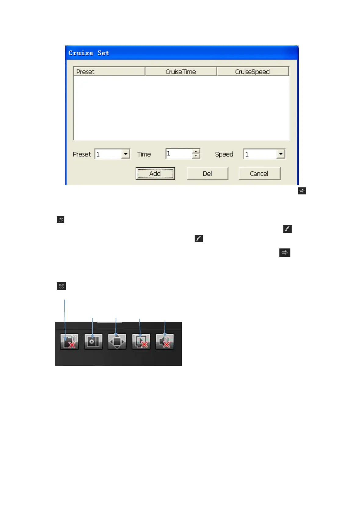 [Call a cruise] Call a cruise by selecting a cruise number from the "cruise" drop-down list and then clicking " "
