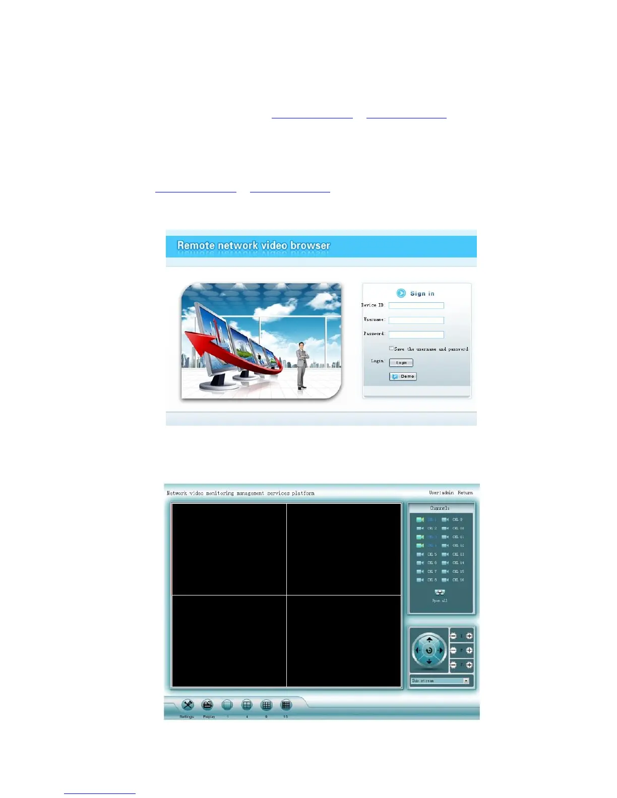 1. Go to www.dvrskype.com or www.e-seenet.com,input Esee ID, user name and password, this
