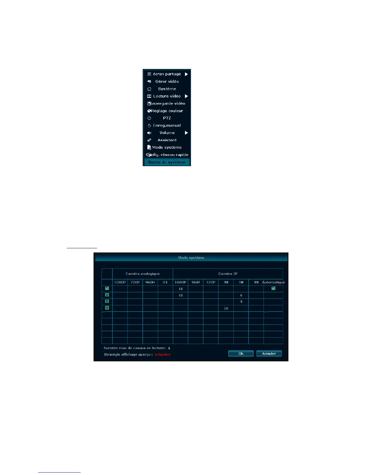 C – mode 9 canaux 5MP (caméras 720p, 960p, 1080p, 3MP, 4MP et 5MP)