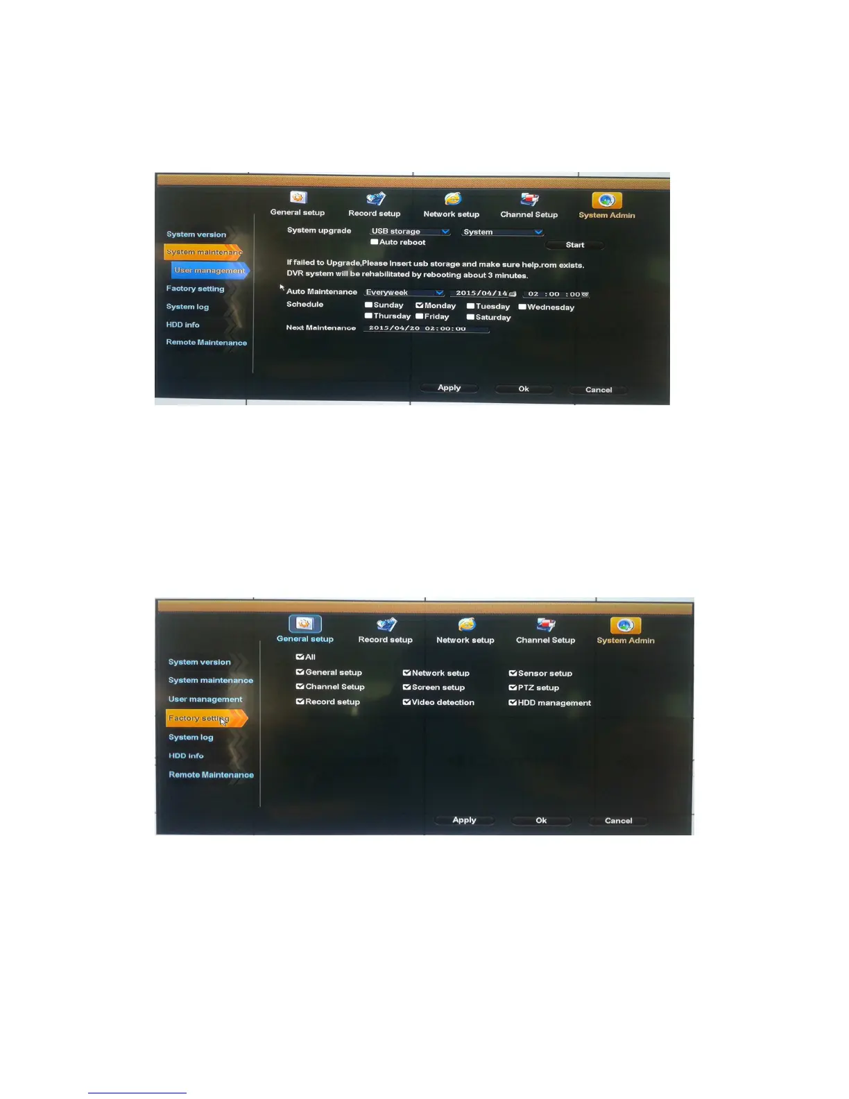 Notes: after factory setting, all the settings will be the initial one, please use carefully.