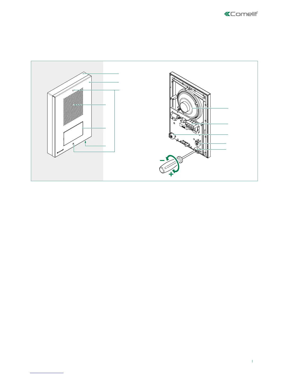 External unit complete with 1 call button, 1 wall bracket and 1 flush-mounted box.