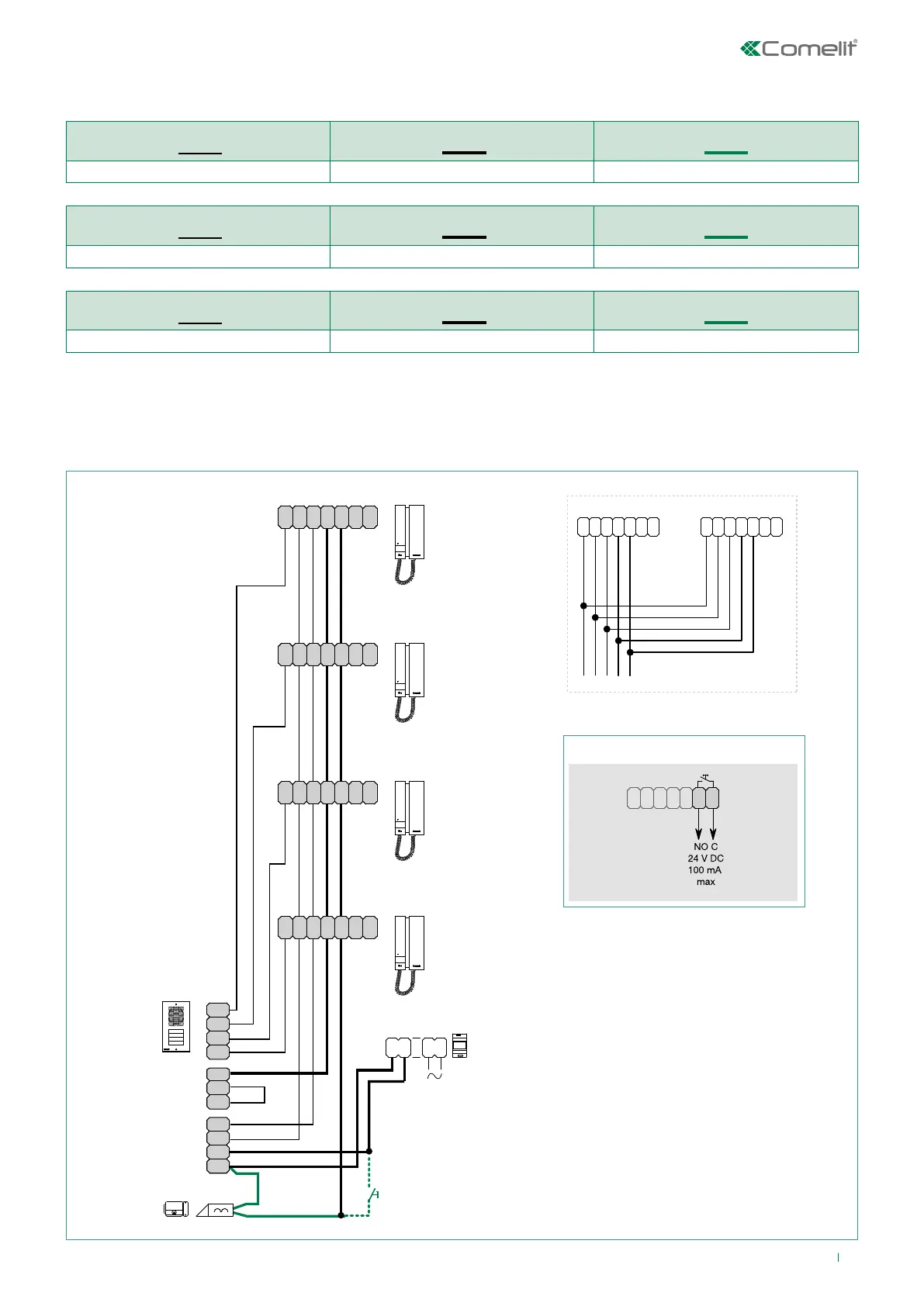 Comelit KAE5064 - Operating Distances; Wiring Diagrams; Standard System and 1 Additional Door-Entry Phone Connection Variant