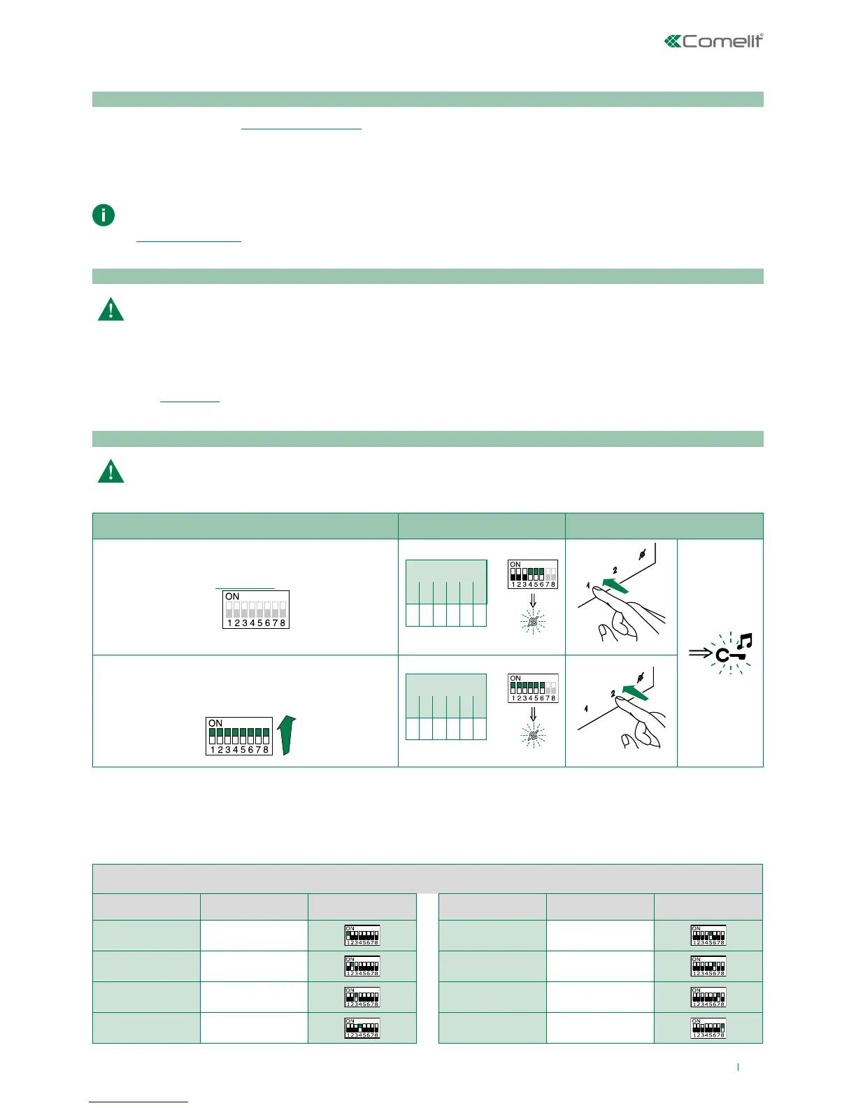 Codice DIP switch ON S1 Codice DIP switch ON S1