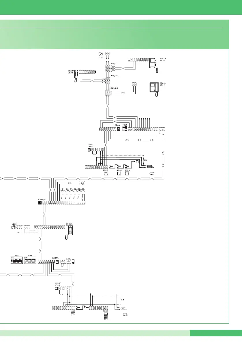 Installation parlophonique et visiophonique Simplebus Color avec 2 entrées principales, 3 secondaires audio et standard de conciergerie.