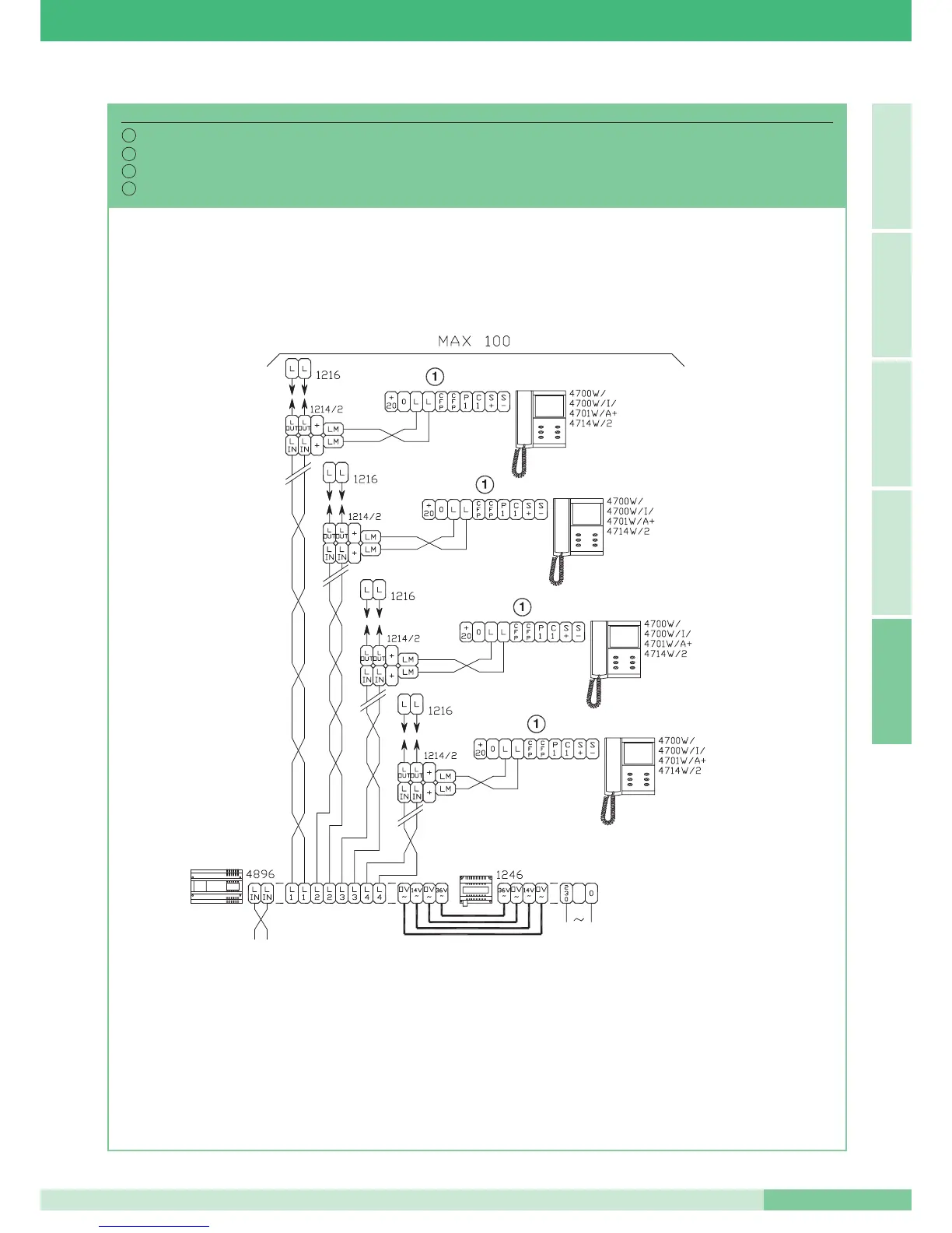 Comelit MT SB2 01 - Wiring Variants: Riser Branches; Multiple Riser Branches per Mixer-Power Supply (SB2;B)