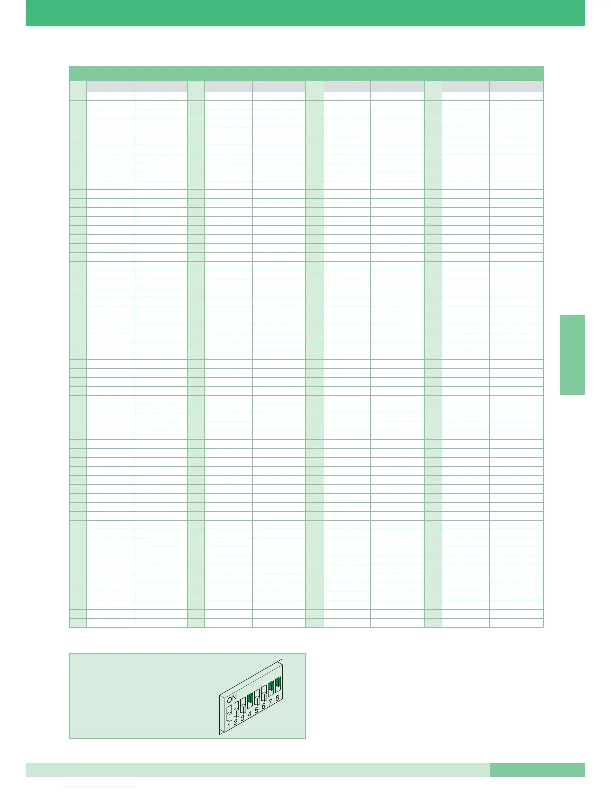 Programmeringtabel van de dipswitches