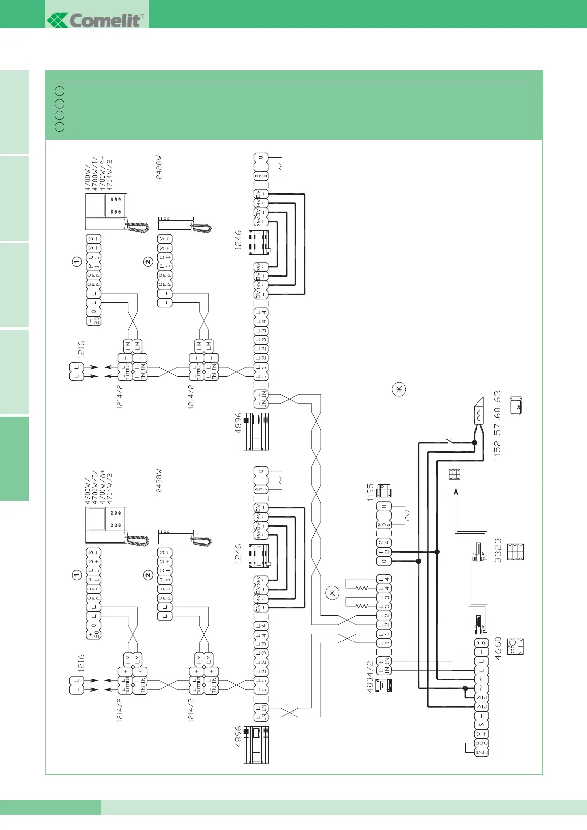 Impianto con 1 porta video Serie Powercom e max 4 Miscelatori-alimentatori Art. 4896.