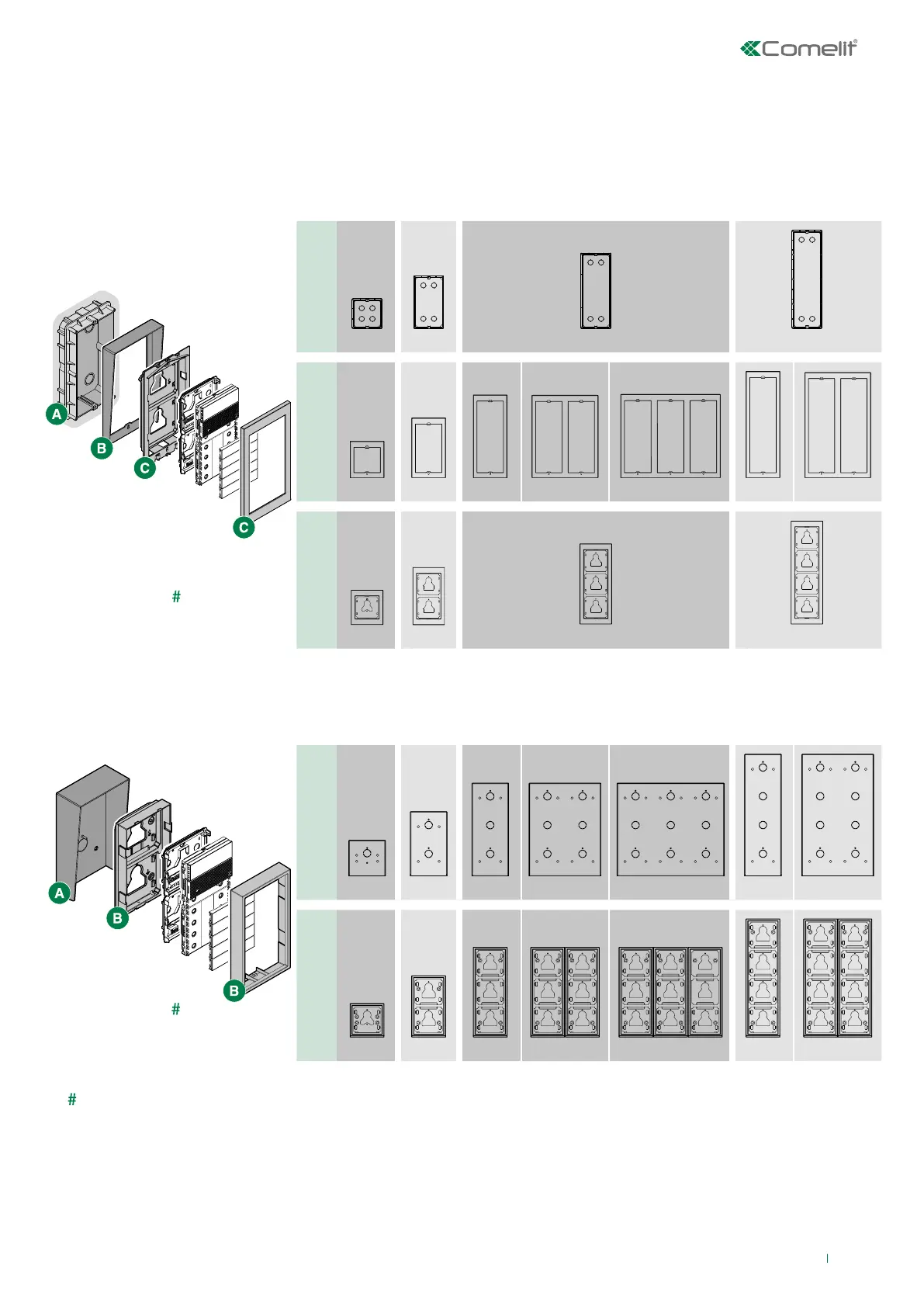 Comelit Simplebus1 UT1010 - Installation; Flush-Mounted Installation Composition Table; Surface-Mounted Installation Composition Table