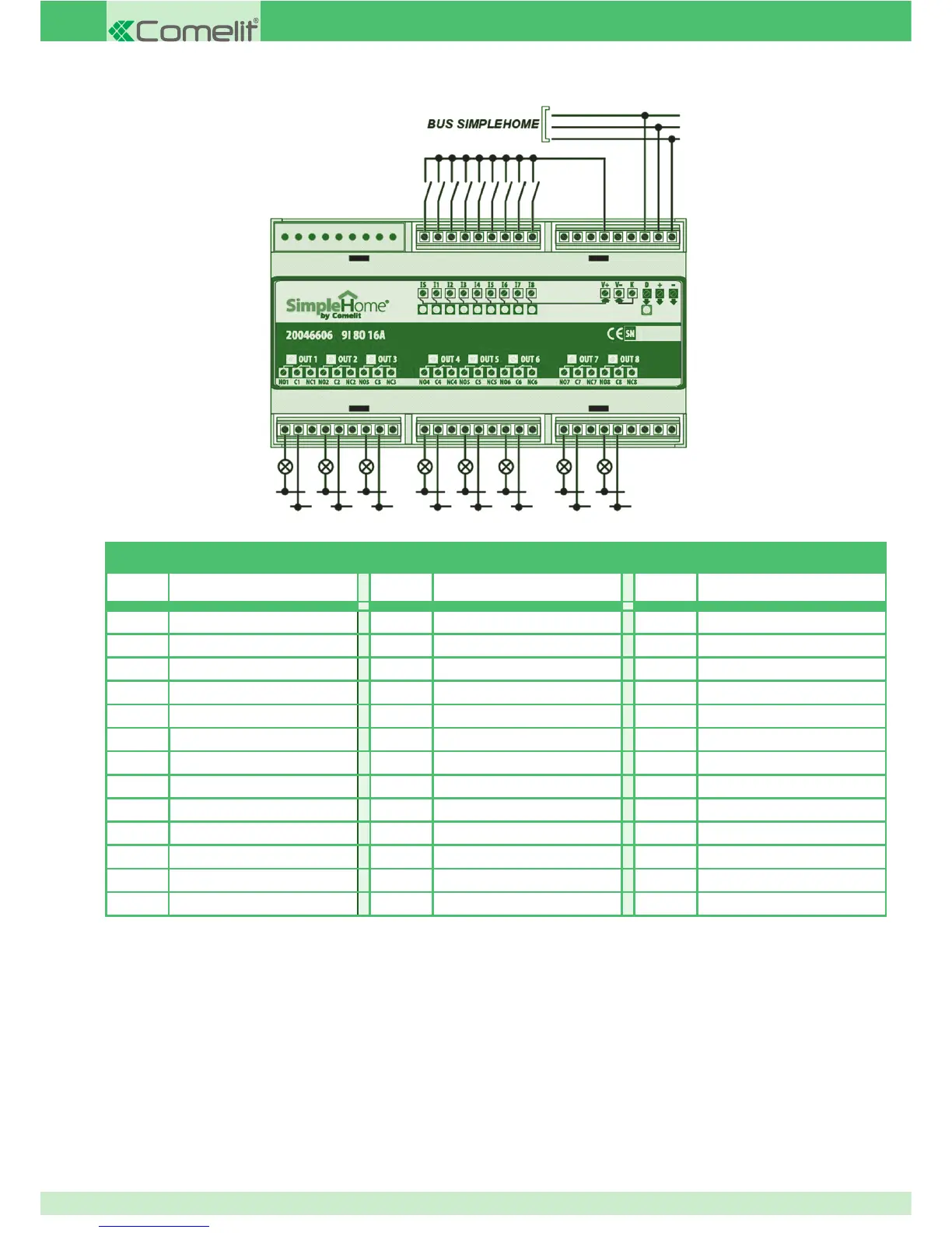 N.B. The module must be programmed via the BUS line, using the SimpleHome/RS232 interface (20022611) and the SimpleProg
