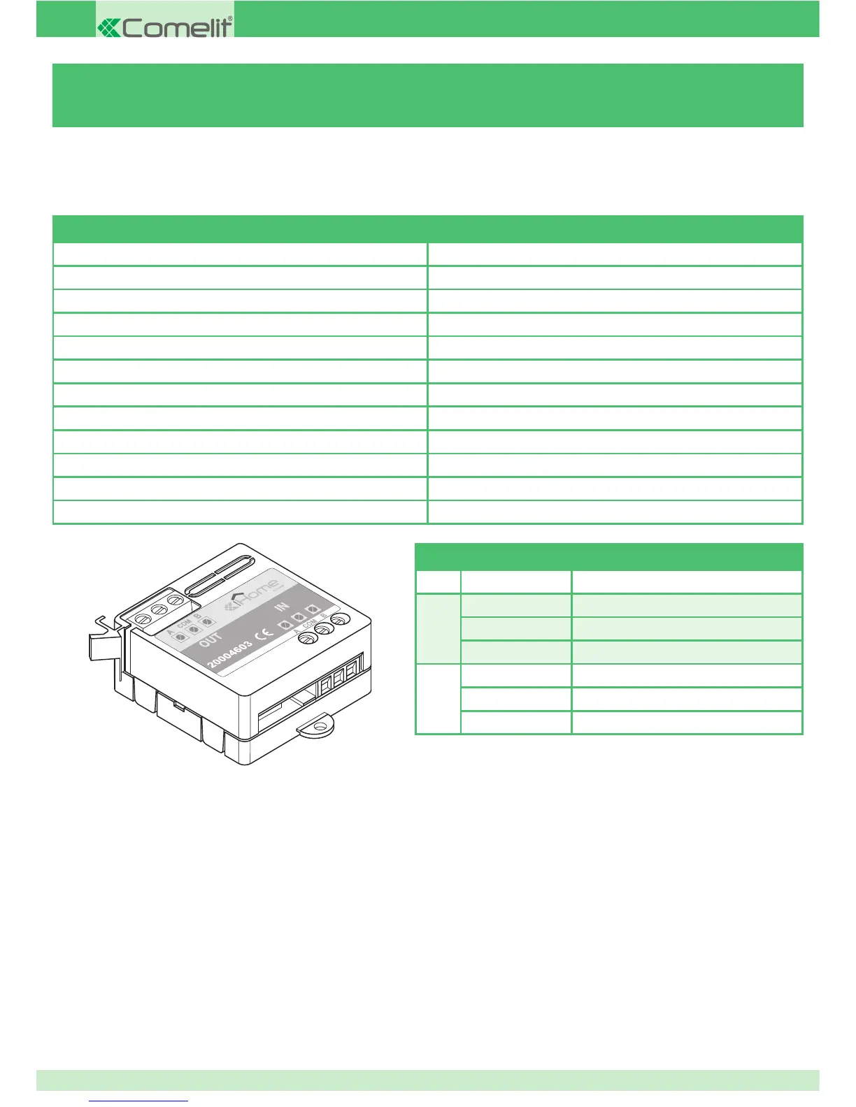 Outputs • 2 10A N.O. relay outputs (230 Vac), resistive loads