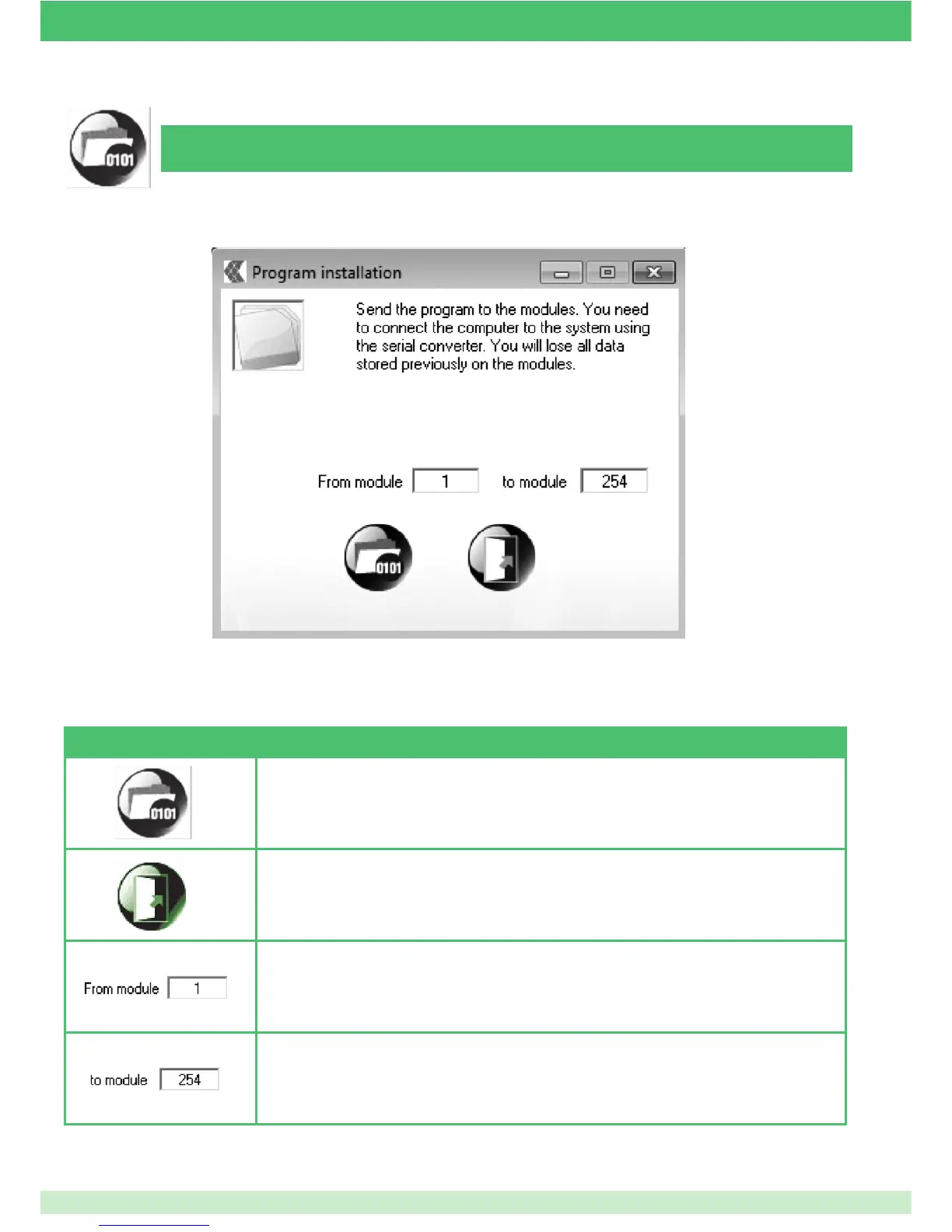 N.B. it is always possible, using this command, to send new programming to a system already con gured on a previous occasion: in this case