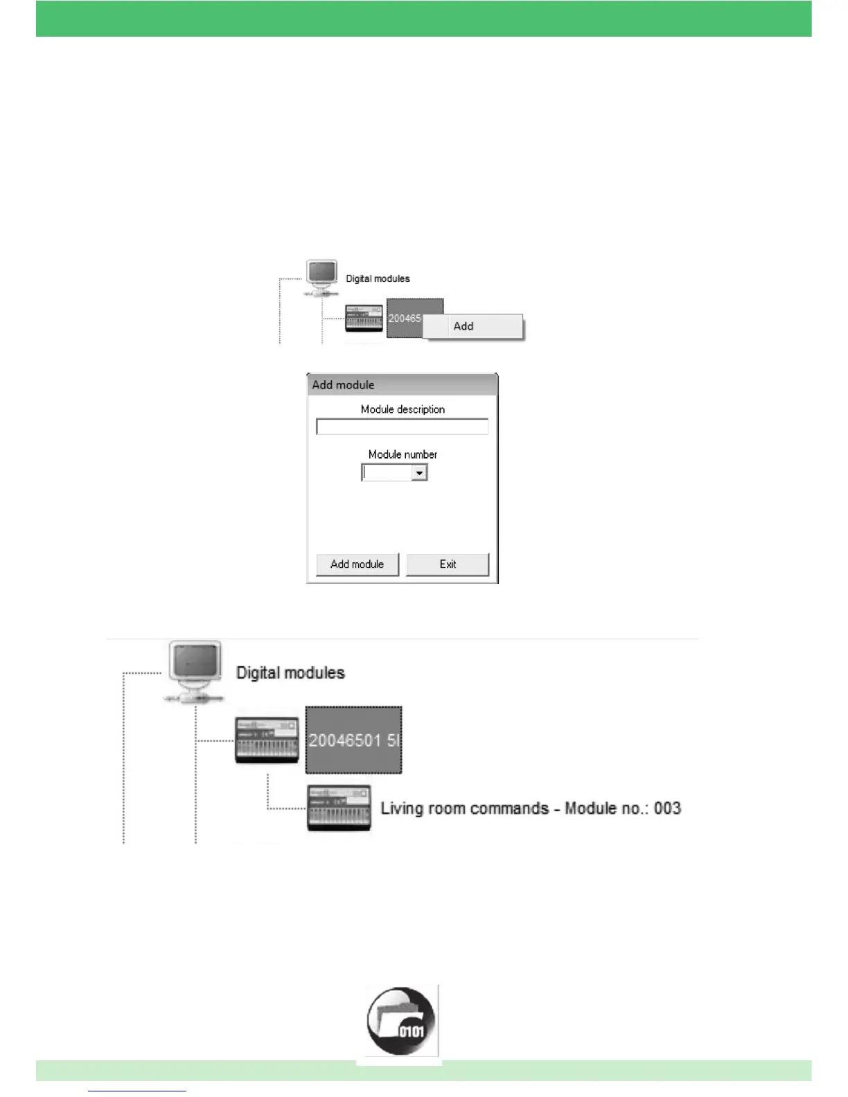 3) make a note of the module you wish to program and then add it to the "tree menu" screen as follows: identify the device type (e.g. digital or