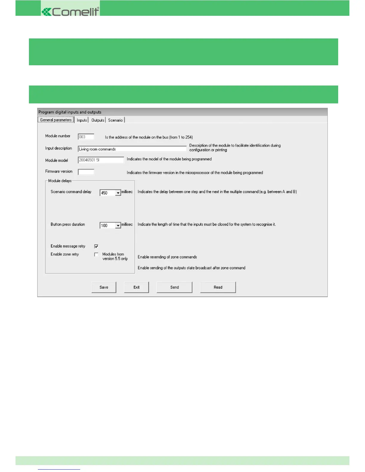 SCENARIO COMMAND DELAY: this parameter can be used to set a delay time for the execution of the 8 commands relating to the