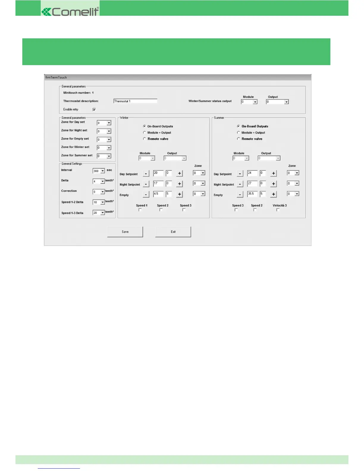 Winter/Summer status output: this fi eld indicates the module number and the output number to control in order to make the