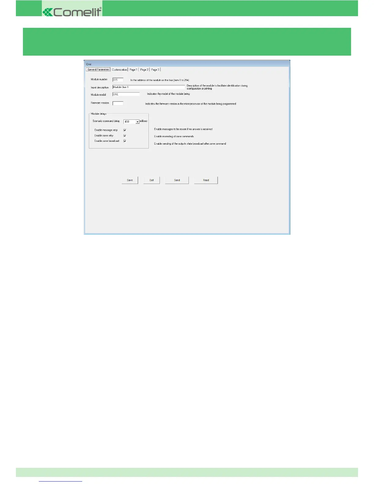 3.6.1 - GENERAL ONE - ONE/E MODULE PARAMETERS