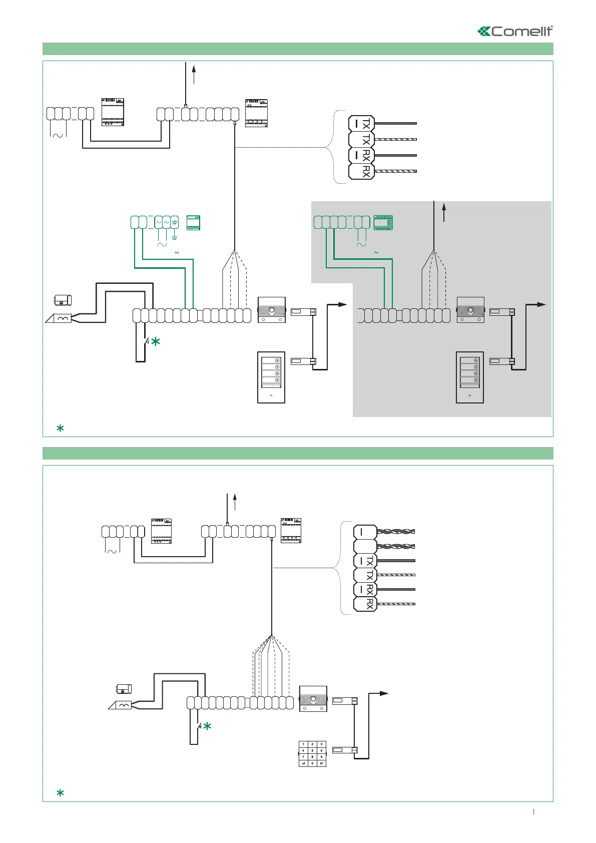 Comelit UT8020 - Touchscreen Module Art. UT9270 with Additional Power Supply Wiring; Number Keypad Module Art. UT9279 M Wiring