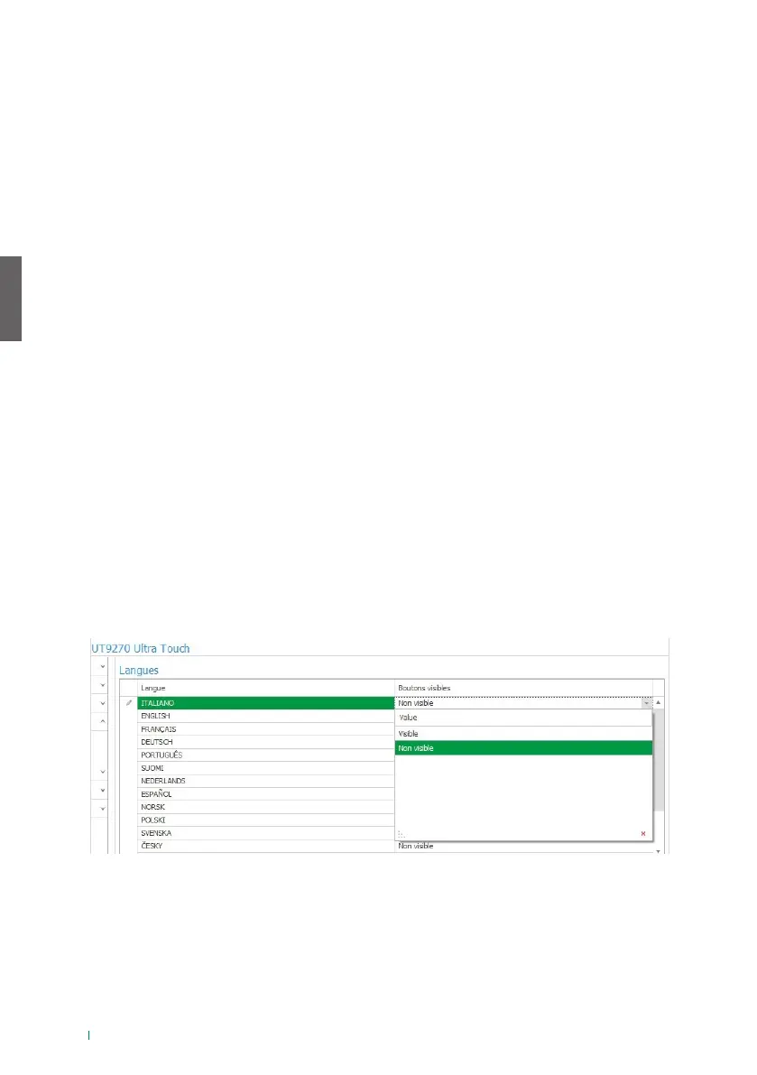 Sous la colonne « Boutons visibles », il est possible de rendre « Visible » ou « Non visible » chaque langue