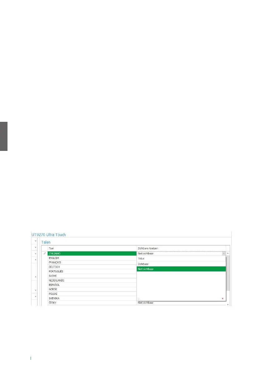 Onder de kolom “Zichtbare knoppen” is het mogelijk elke afzonderlijke taal “Zichtbaar” of “Niet-zichtbaar” te