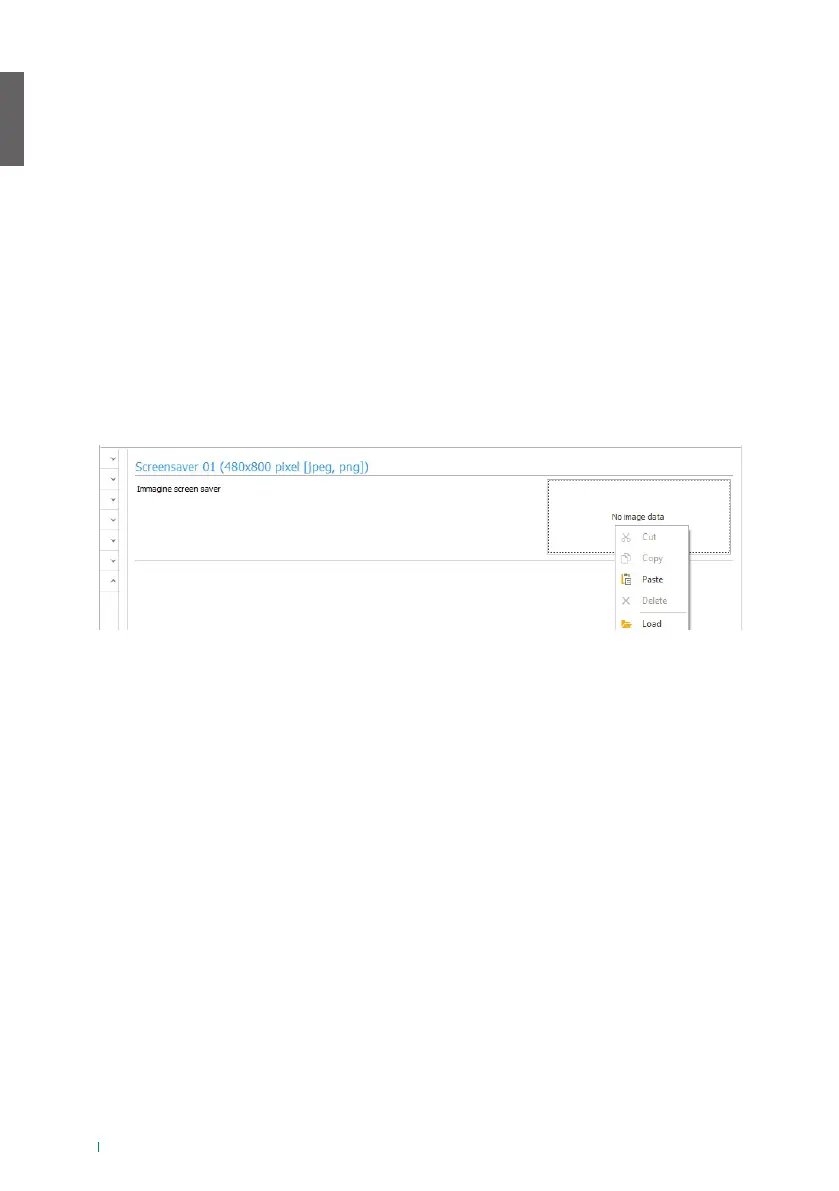 Per caricare un’immagine di screensaver personalizzata cliccare con il tasto destro del mouse nel riquadro a