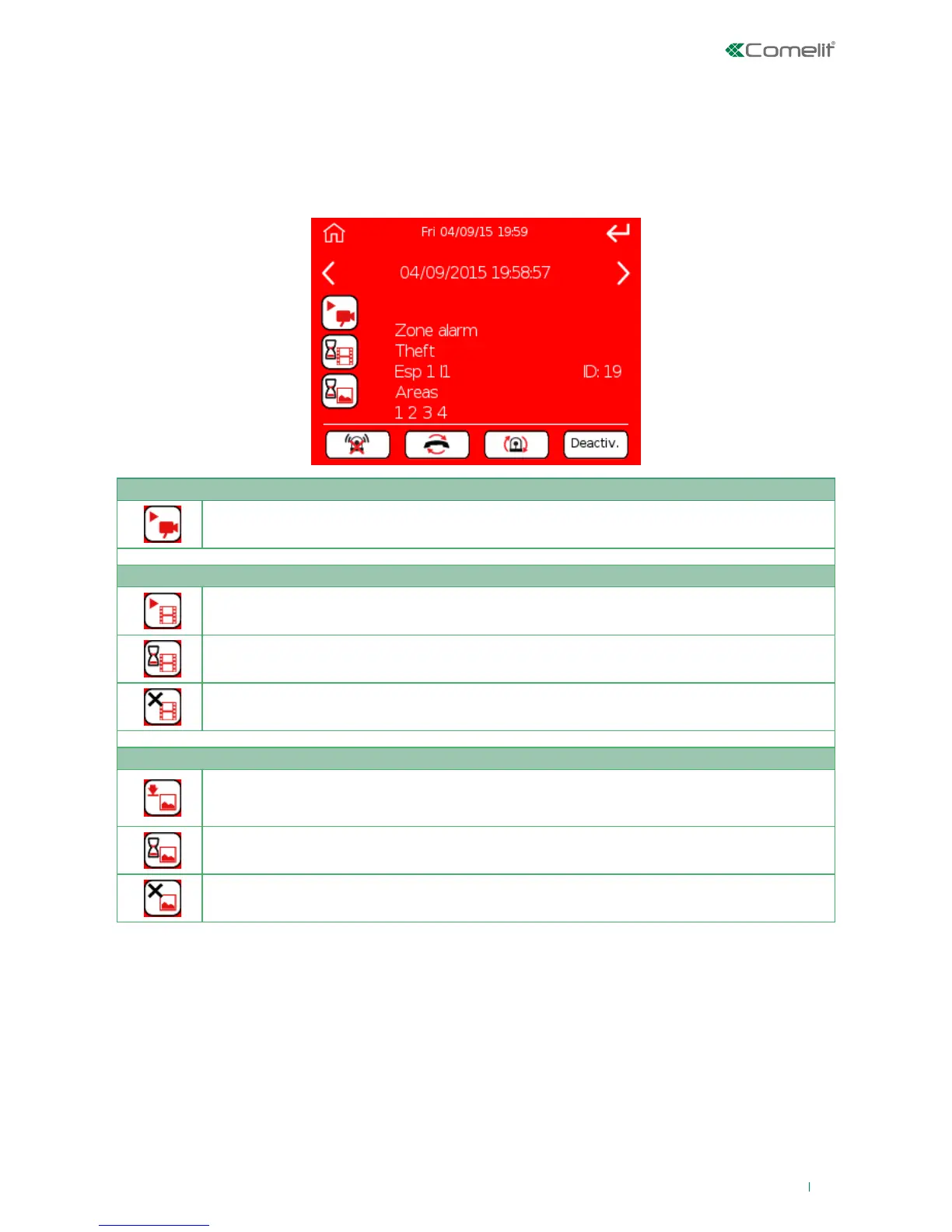 Press this icon and enter your user code to view the video recording of the alarm zone.