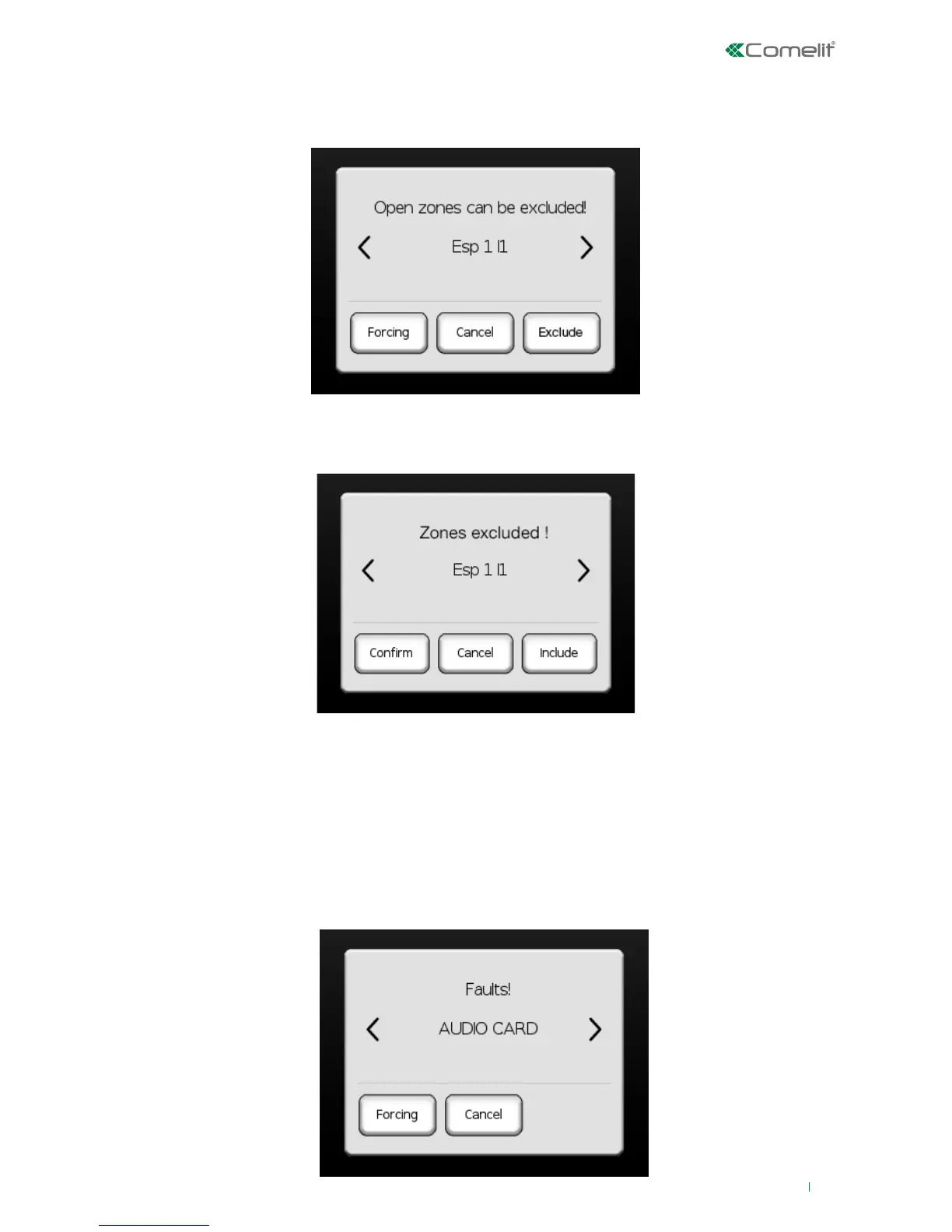 open. Press 'Cancel' to cancel the operation. Press 'Exclude' to exclude the zone; the system will repeat