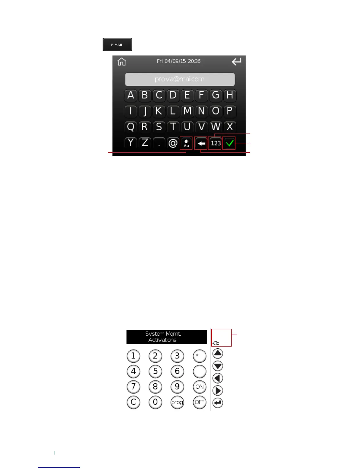 Comelit VEDO - Edit Email Address; Options; Keyboard Emulation