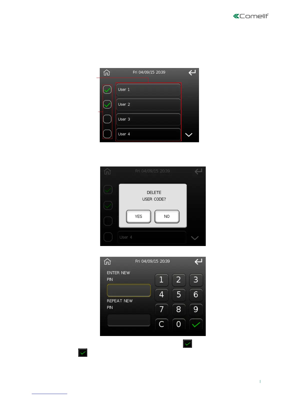 Press button '2' to delete the corresponding user code, the following will appear to confirm deletion: