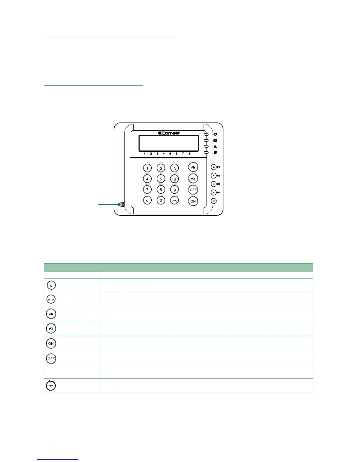 The keypad is used to operate the system via menu navigation and the entry of numeric and alphanumeric