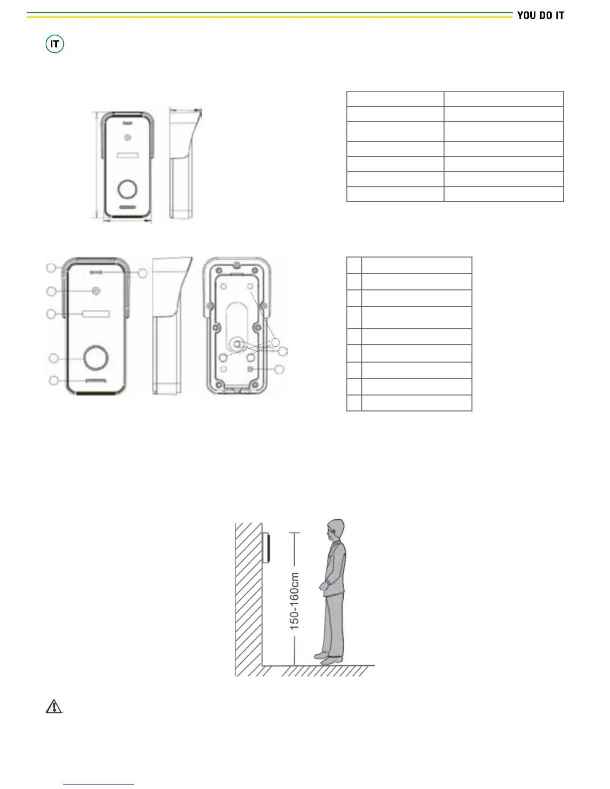 * Si consiglia l’installazione del posto esterno ad un’altezza di 150-160 cm
