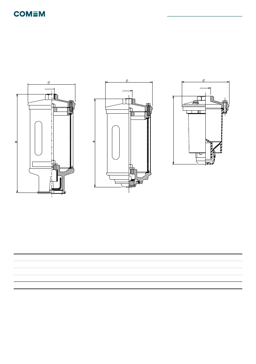 The following are the external dimensions for the air breather types 1 DB - 1 MB - E11.