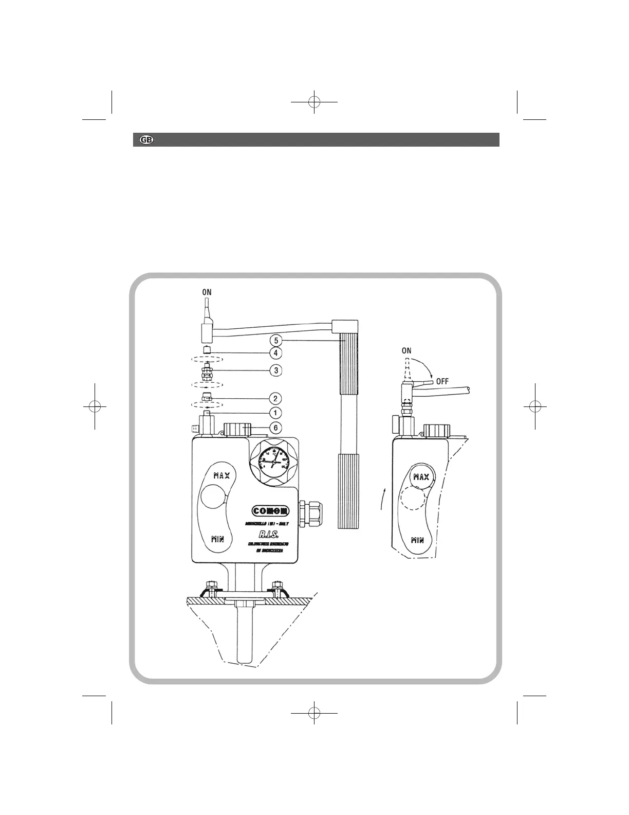 Remove the cap “4”, fit the pump “5” by means of the threaded coupling provided and turn the lever to OFF position.