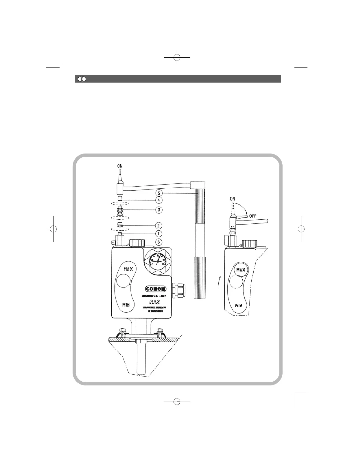 Para la reposición del nivel del aceite interno del R.I.S. abrir la palanca del grifo “1” y aspirar con la bomba “5”. A