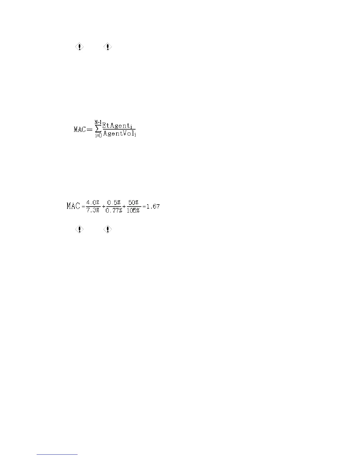 Below is the formula to calculate the MAC value in the presence of one or more anesthetic
