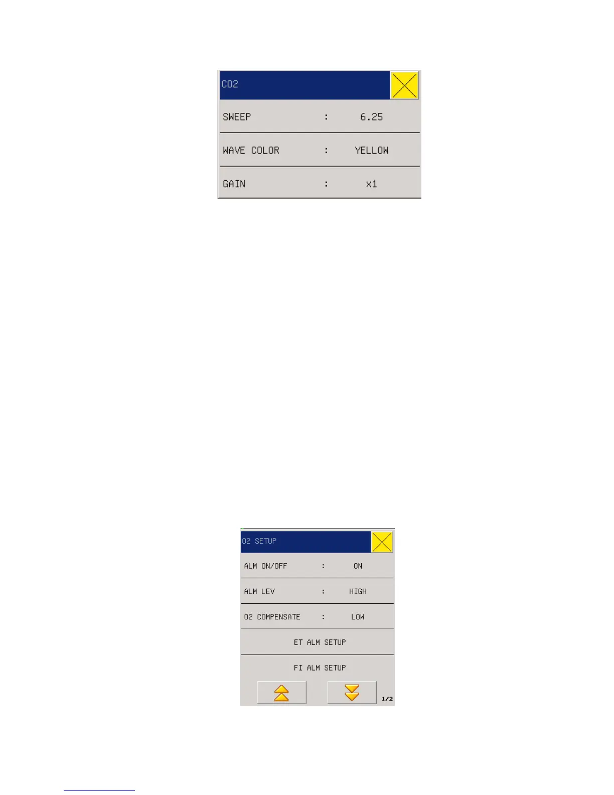 Gain: ×1, ×2, or ×4, to adjust the wave amplitude of the CO2 waveform.