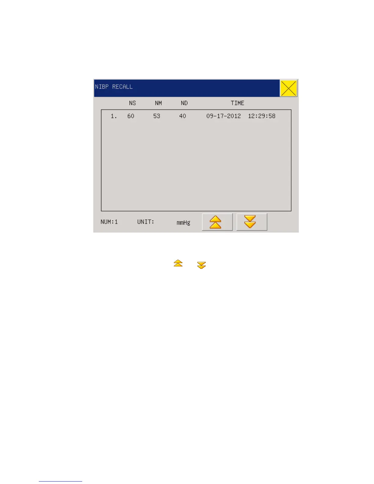 After users select the NIBP Data Review item under the System menu, the windows will display