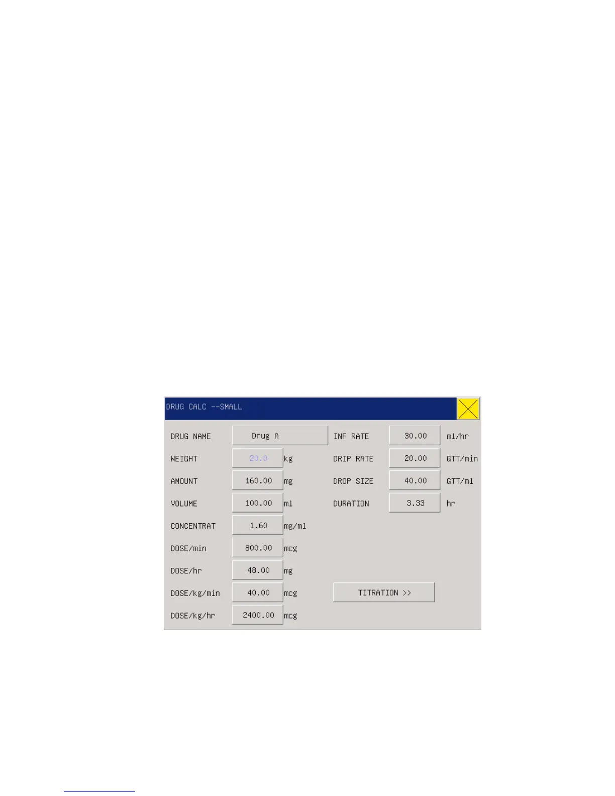 Users can select “Drug Calculation” under the MAIN MENU to pop up the following window:
