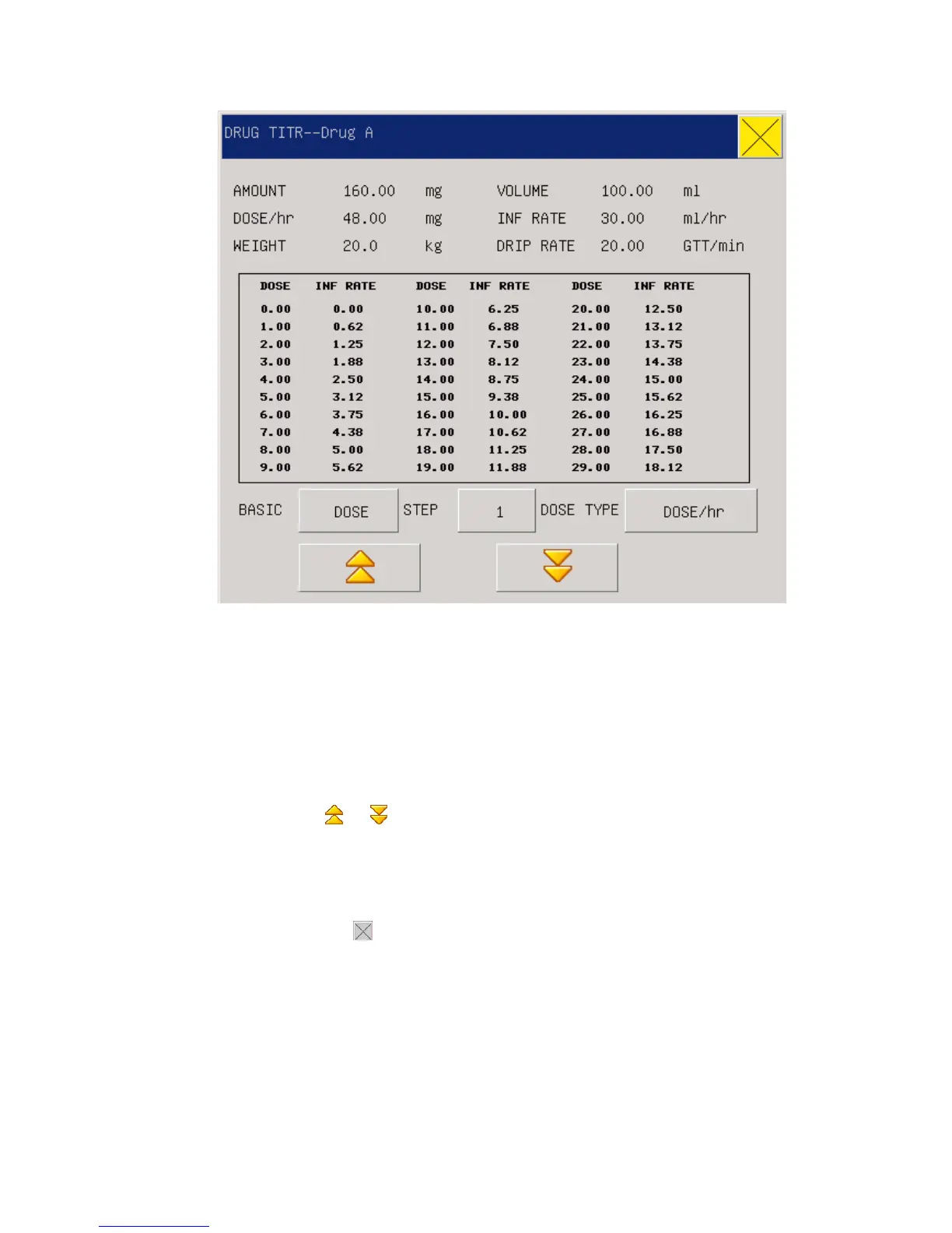 Move the cursor to the” ” and press the knob to return to the “Medicine Calculation” menu.