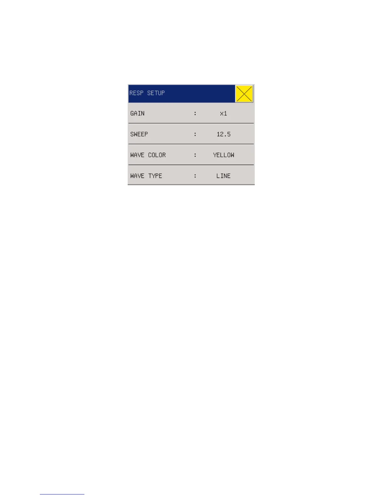 GAIN(Waveform amplitude): Users can set enlarged display of RESP waveforms under five