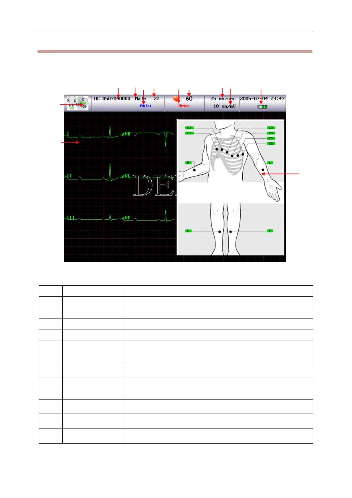The selection of record speed: 5mm/s, 10mm/s, 12.5mm/s, 25mm/s,