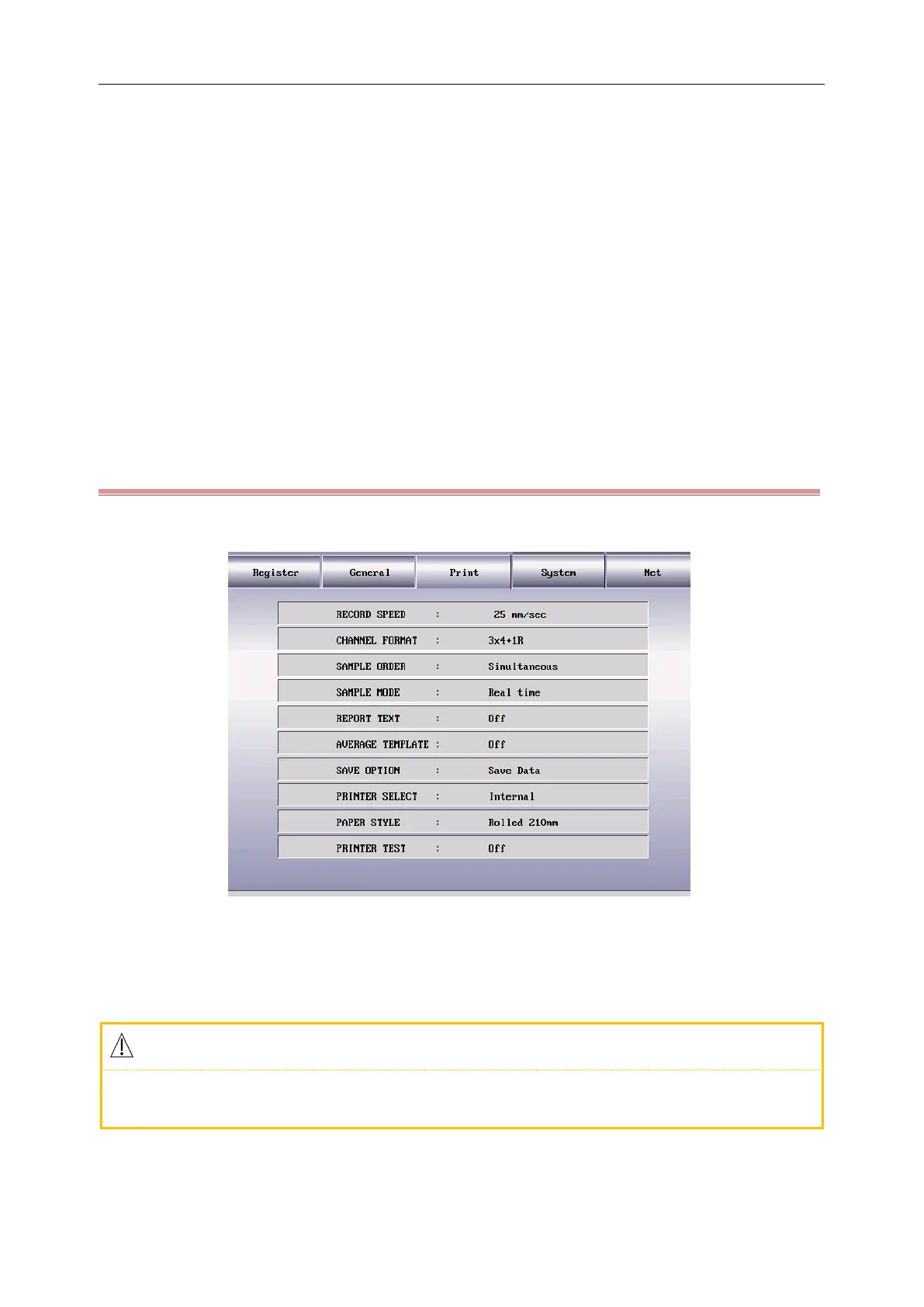 1) [Record Speed]: the paper driving speed of the recorder, there are five options for the user to set such as